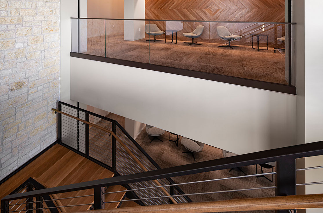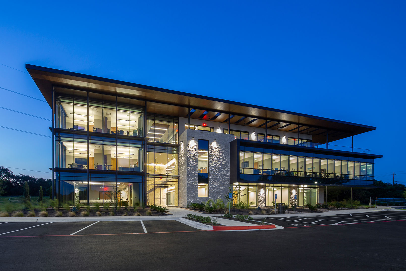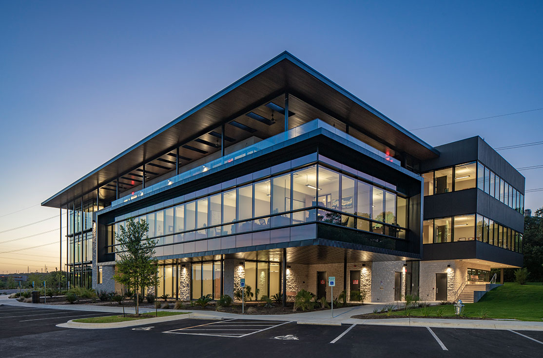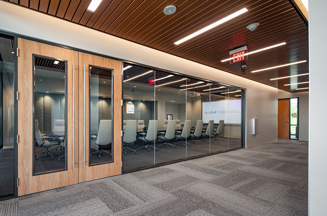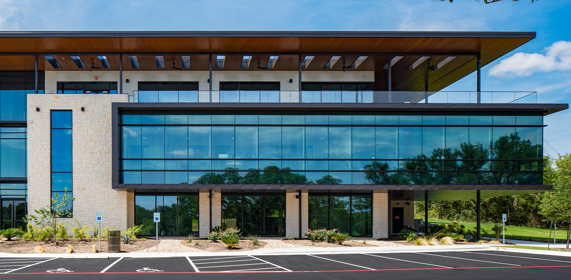 AANP new headquarters building is Class-A office space within a 3-story building on 5 acres in southwest Austin, Texas. The design is intended to bring outside in by use of floor to ceiling windows, soaring views, and incorporation of natural materials.