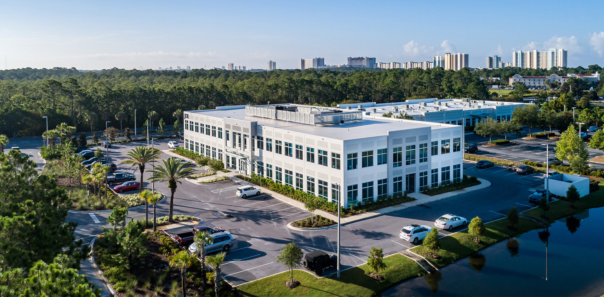 St. Joe Company is one of White Construction Company’s most valued repeat clients. This is the third building added to a growing office park developed by St. Joe in Panama City Beach, Florida. The development is ideally positioned at the southwest corner of US Highway 98 and Richard Jackson Boulevard in the heart of Panama City Beach’s commercial activity. The Class A office building offers 35,732 sf to accommodate the area’s rising demand from local, regional, and national companies.