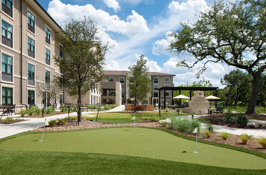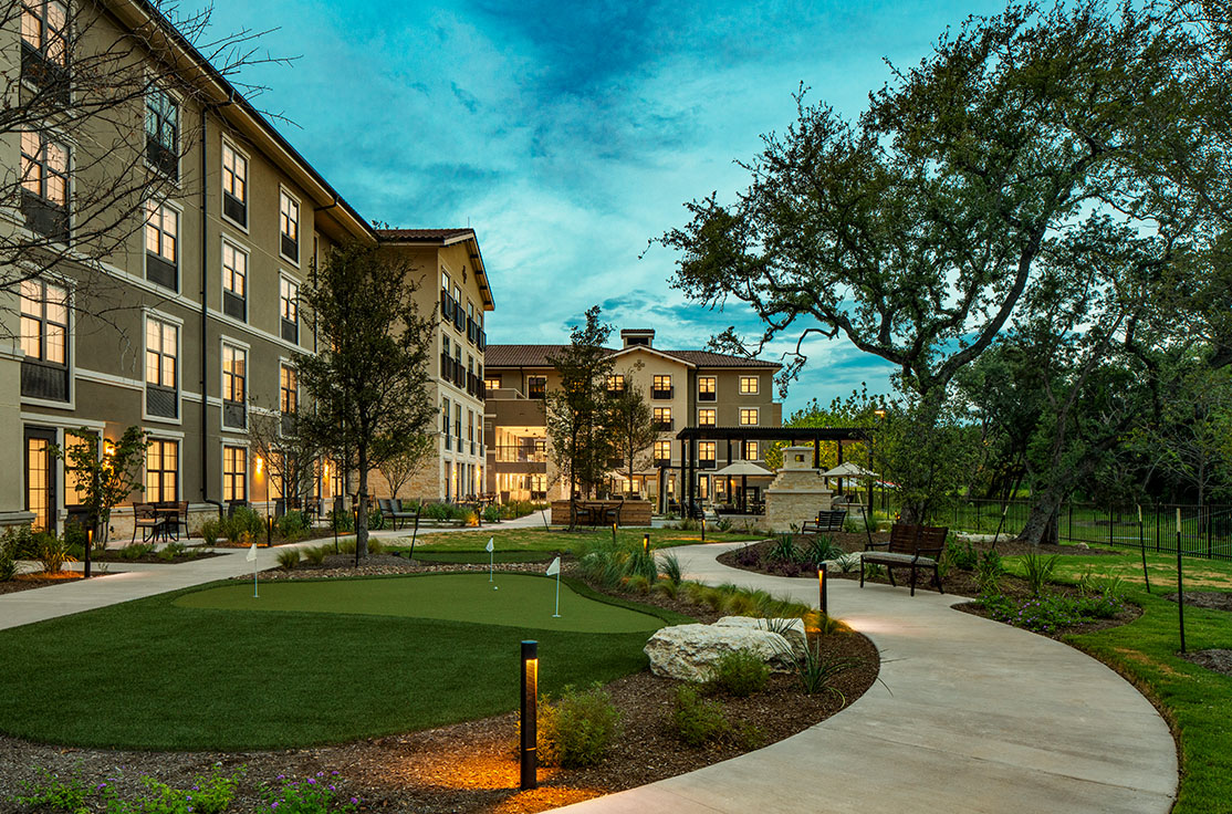 This project, located in Lakeway, provides 162 residential units offering a range of services including independent living, assisted living and memory care. The four-level facility was carved into the limestone hills of Lakeway. The cast-in-place concrete structure provides 132,000 sqft of living space, a commercial kitchen, multiple dining rooms, a screening room, wellness center, salon, and many public areas for residents and guests. Outdoor living spaces include a swimming pool, fireplace, putting green, and natural pond. Few retirement spots are more beautiful.