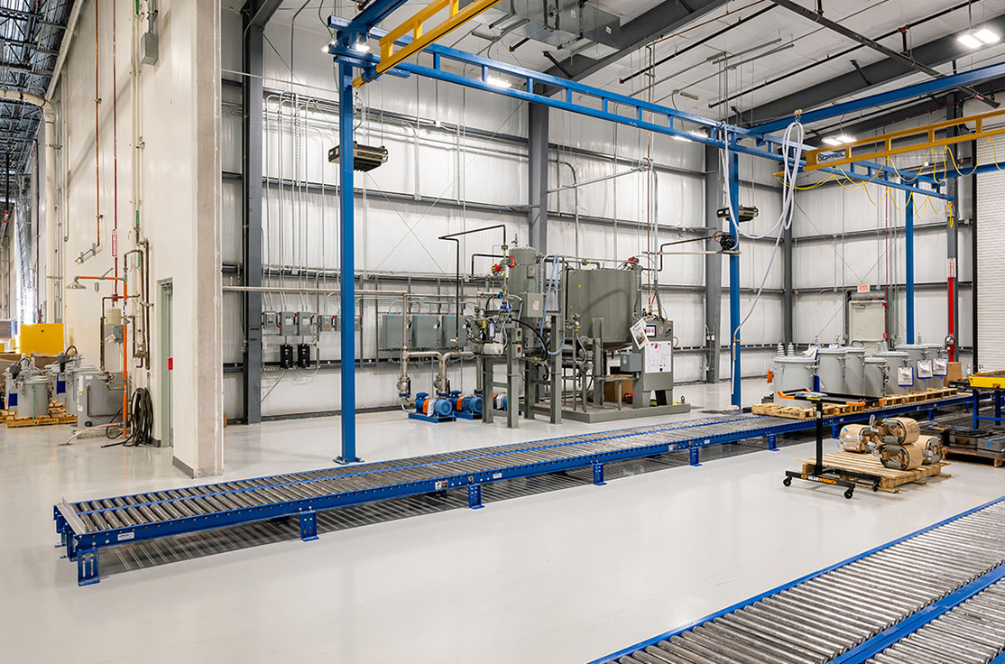 This project is a significant renovation to upgrade the manufacturing area of an existing facility that White Construction built for the developer, The St. Joe Company. The project installed modifications to accommodate new equipment to build transformers. The facility’s 130+ pieces of new equipment required careful MEPF coordination. The scope included minor office renovations and site improvements – concrete, utilities, and miscellaneous structures. A concrete containment basin was designed and constructed beneath three oil storage tanks to collect potential fluid leaks.