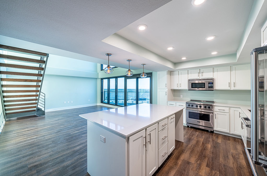 Port Aransas, Texas was ground zero when the devastating Hurricane Harvey made landfall in August 2017. White Construction Company was called upon to help rebuild one of the area’s iconic condominium developments, Cline’s Landing. The project consisted of two eight-story buildings connected by an atrium with 108 individual units. About 95% of the interior was removed while the concrete structure and some of the skin remained in place once demolition was complete.