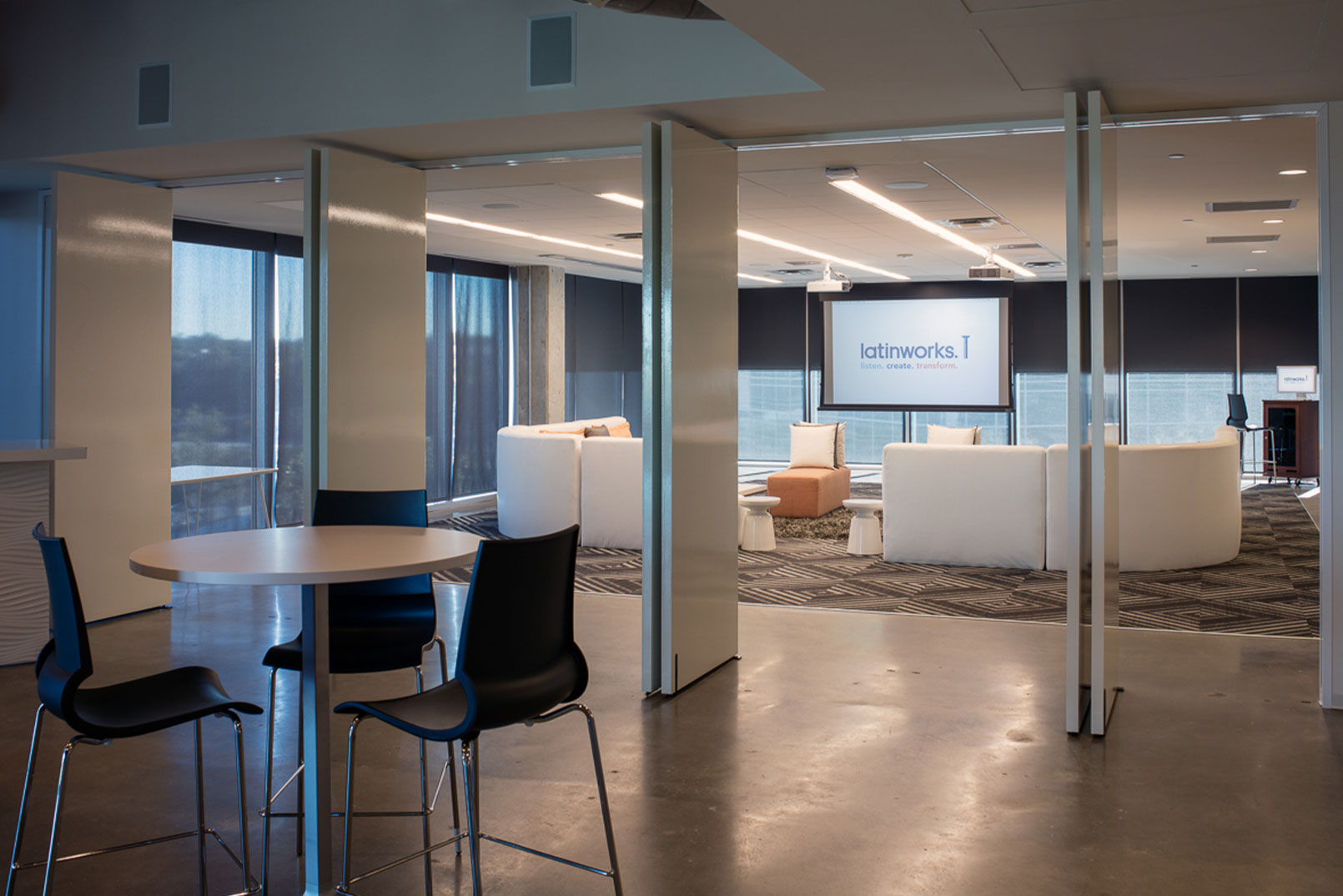When Endeavor Real Estate Group learned their new client Latinworks, one of the most creative and dynamic advertising agencies in Austin, wanted an interior finish out that would epitomize their agencies’ fast pace, innovation and creativity, they came to White Construction Company.