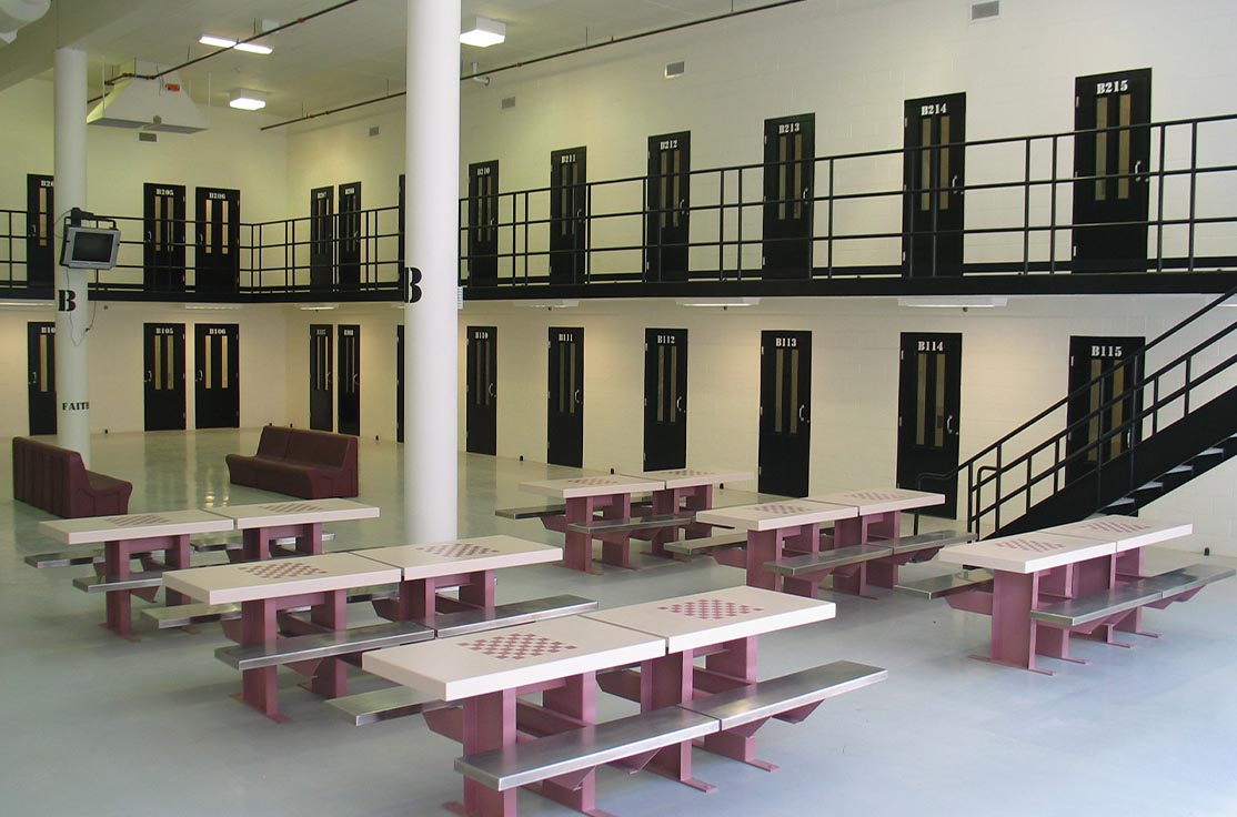 This 600-bed detention facility for low-, medium-, and high-risk inmates with housing units for males, females, and juveniles. It has full-service kitchen, laundry, and medical services with secure contact and non-contact visitation areas. The support areas are designed for future expansion.