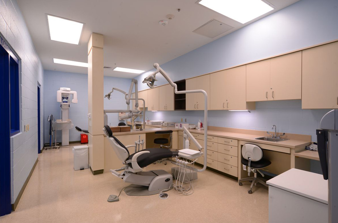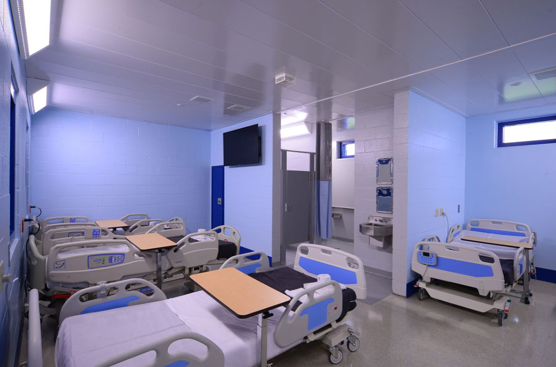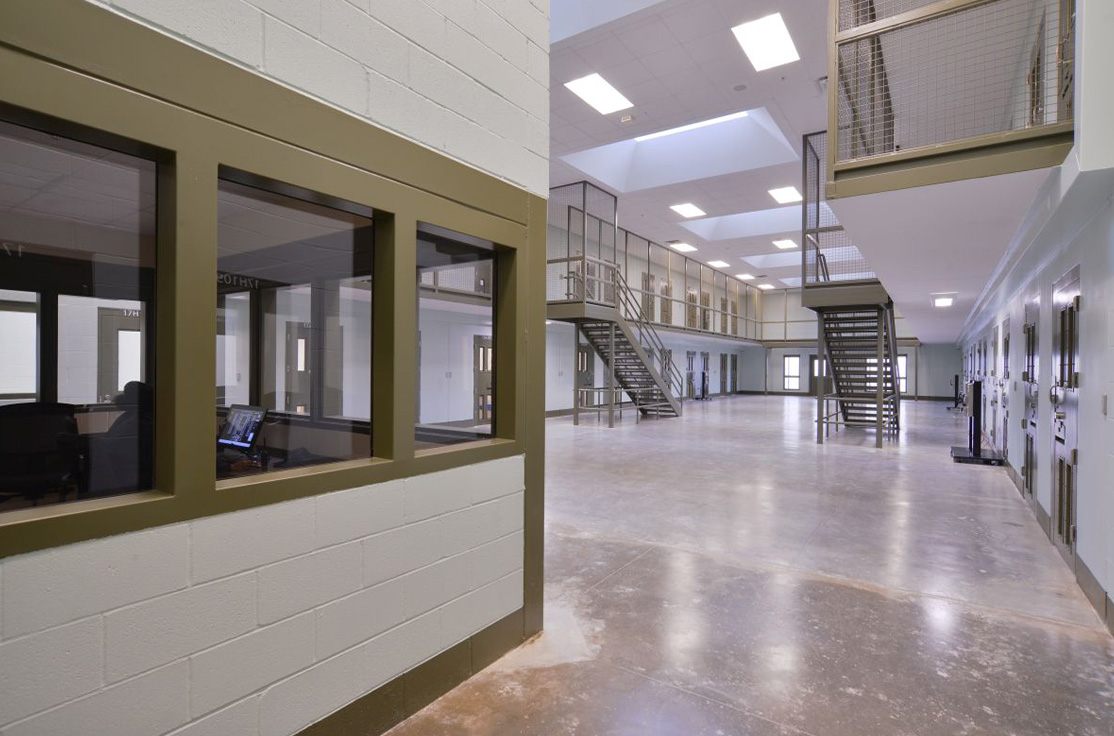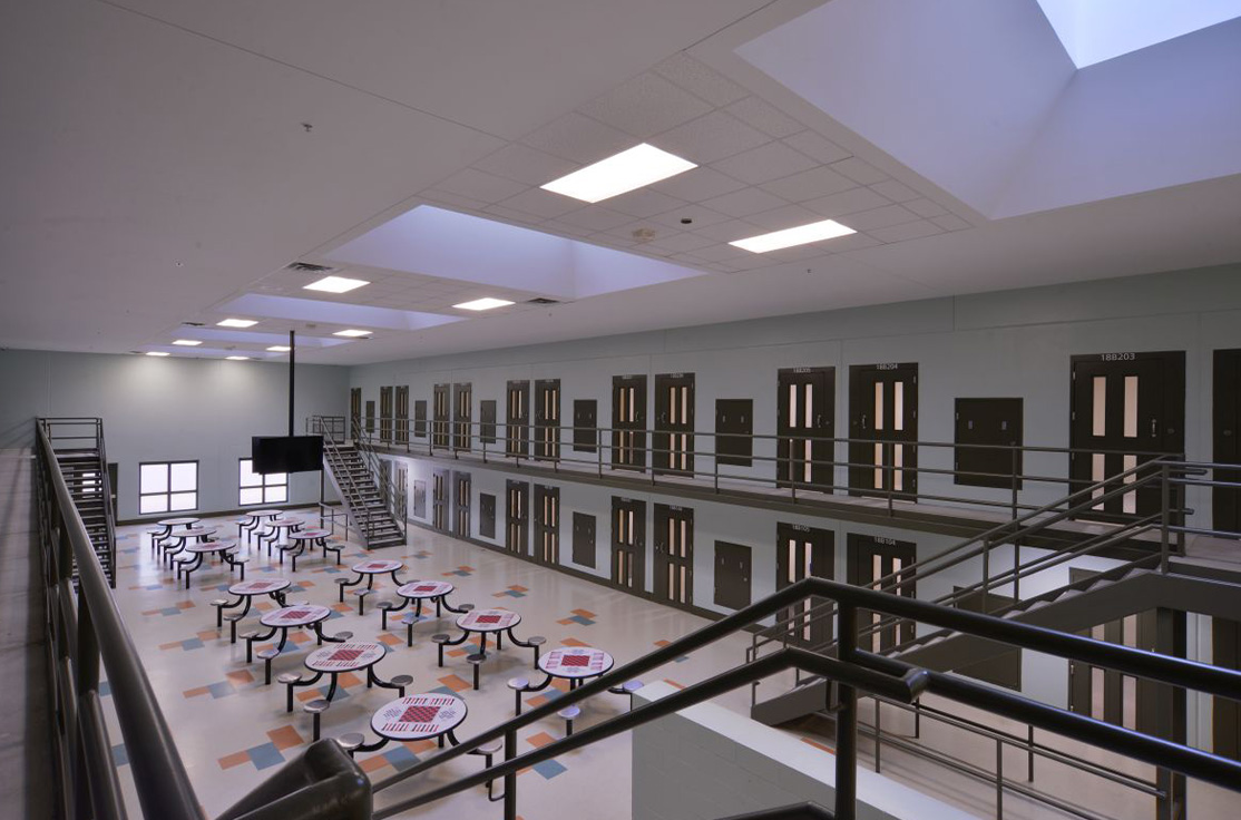 The facility includes male and female-segregated cell units, sixteen dormitory units, five elevators, dining areas, a kitchen, large walk-in coolers, freezers, dry storage rooms, medical, dental, and pharmacy areas, intake/removal processing stations, staff training rooms, command center, muster room, large office areas, and central electrical/mechanical room. In addition, multiple remote mechanical and electrical rooms are strategically located throughout the facility, including security control rooms.