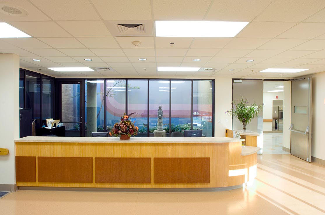 This hospital expansion and renovation included a new four-level concrete-framed tower housing the emergency department with additional surgery and radiology areas. We renovated three levels of the existing facility housing endoscopy, respiratory therapy, and pharmacy. Work also included a new central mechanical plant.