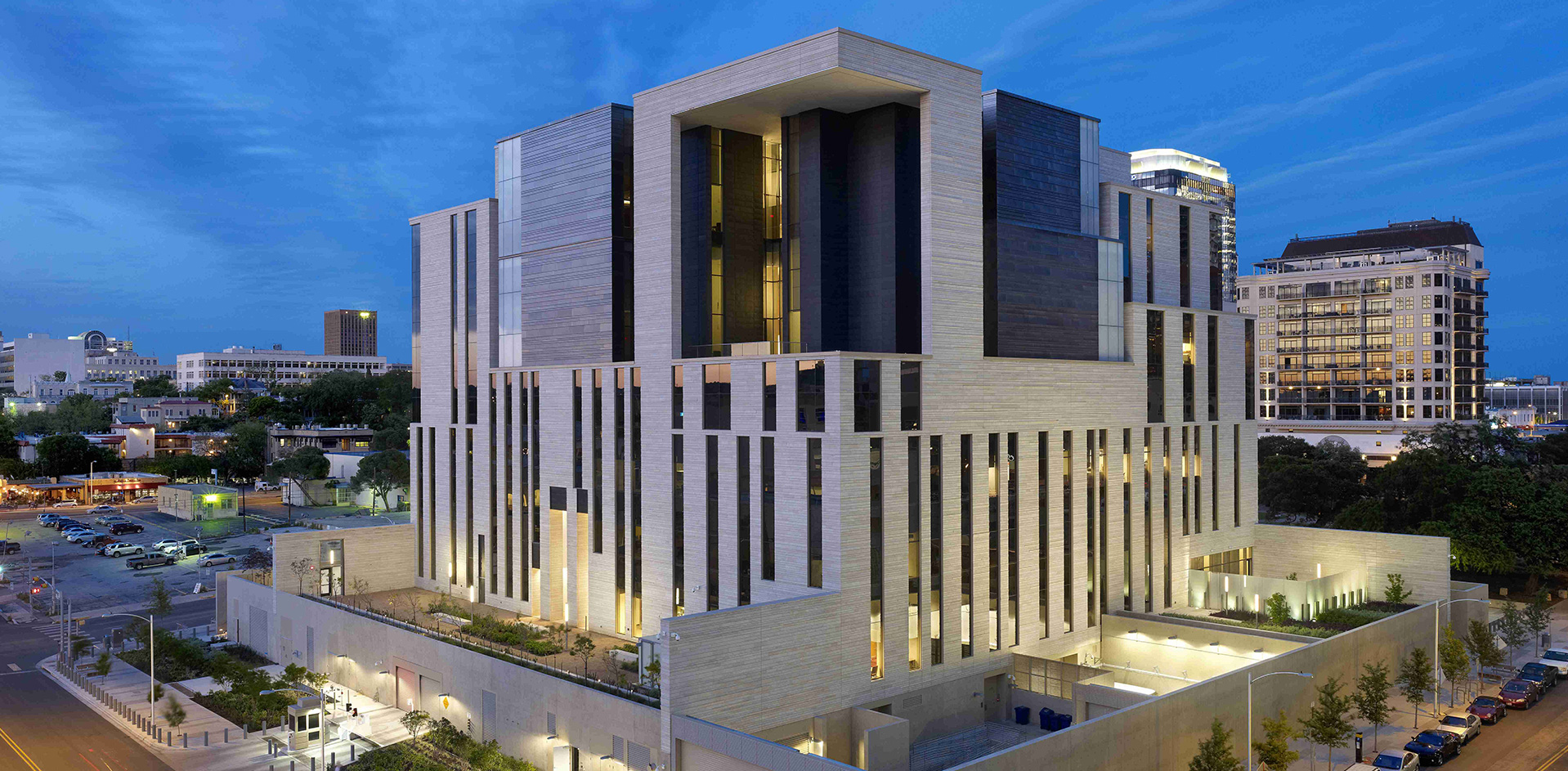 This unique and high-profile project constructed Austin “Great Streets” improvements that includes widened sidewalks and landscape features, as well as creating a plaza atmosphere on San Antonio Street—all of which visually merges Republic Square Park with the courthouse. The expanse of the project is reflected in its size. The courthouse incorporated an entire downtown city block which greatly restricted lay down and staging areas incorporating “just in time” deliveries for most materials.